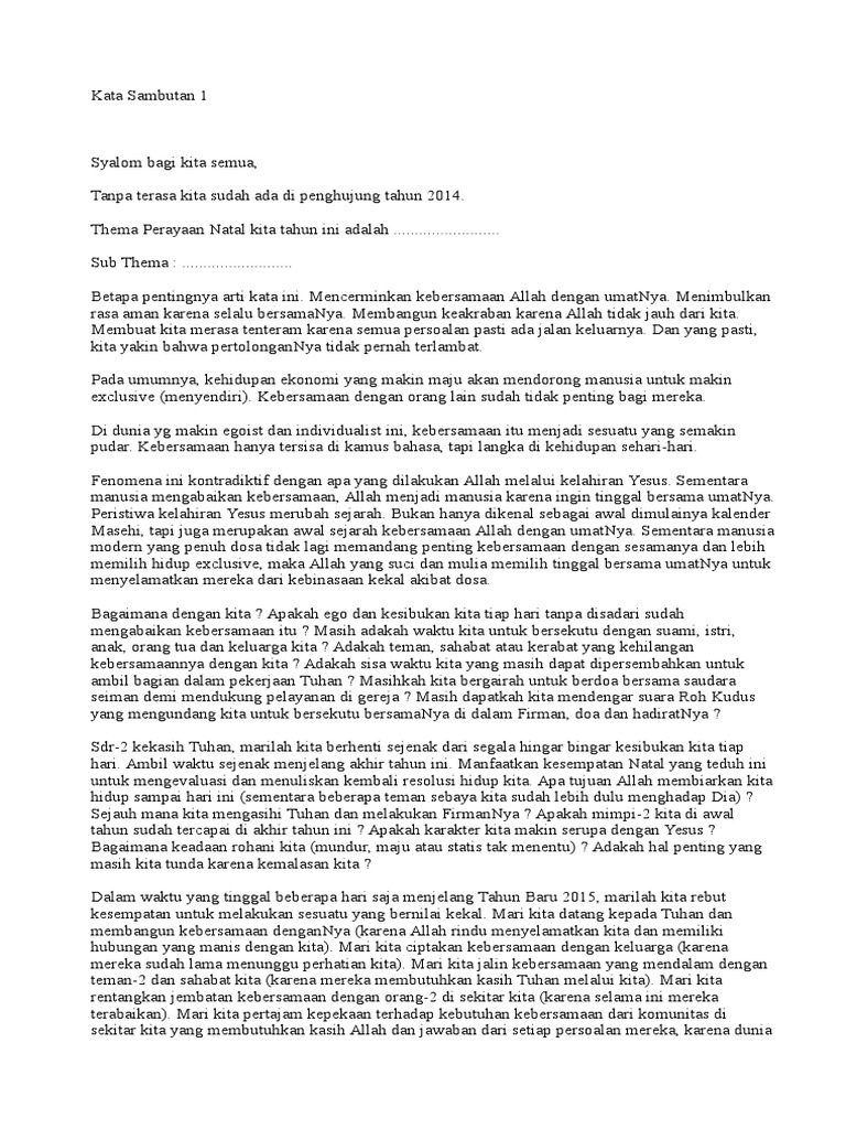 Syalom dan Selamat Natal. Contoh kata sambutan pembukaan acara natal contoh soal 2. Kata sambutan kata sambutan panitia acara keagamaan natal sekolah.
