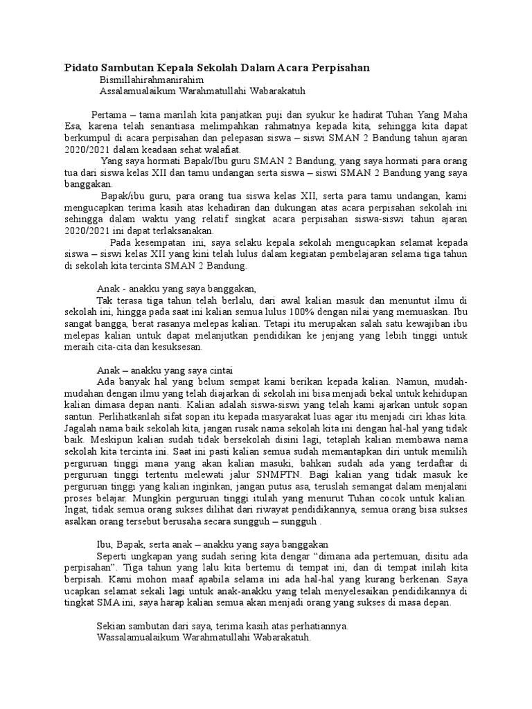 Pidato Sambutan Kepala Sekolah Dalam Acara Perpisahan Pdf